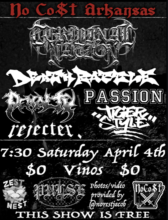 For our music scene to thrive, it’s important that newer and younger bands keep getting amplified to keep things alive. They can continue to be passed down to the next generation of the scene and keep things going. For No Cost, it was important to put on a new local band as the opener, without much exposure to the Little Rock hardcore scene. This will be a recurring theme with No Cost showcases. How does it feel to be the first band to be selected for that spot?